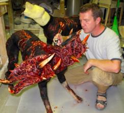 When she isn’t flinging silicone, building robots or “glueing stuff to people’s faces”, she’s a part-time professor at Sheridan College (teaching bodypainting and prosthetic application in the Make-up for Media and Creative Arts program). She also keeps busy raising a very sweet little dog, doing yoga, or attempting to grow plants.